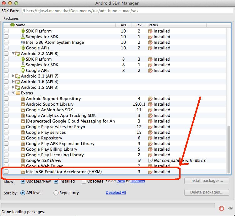 3. Look for an option called “Intel x86 Emulator Accelerator (HAXM installer)” and check the box next to it.